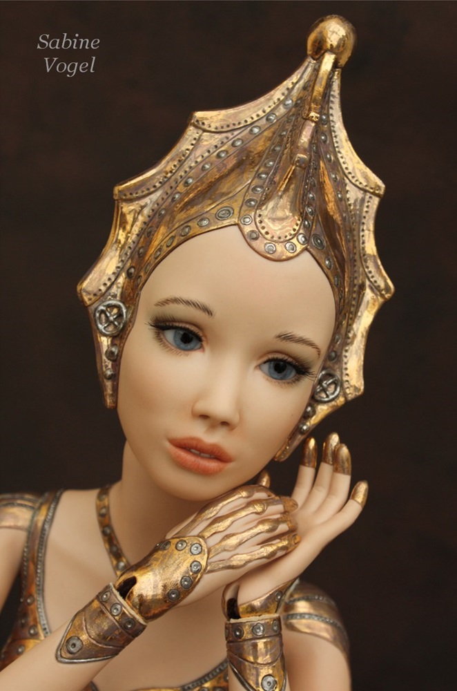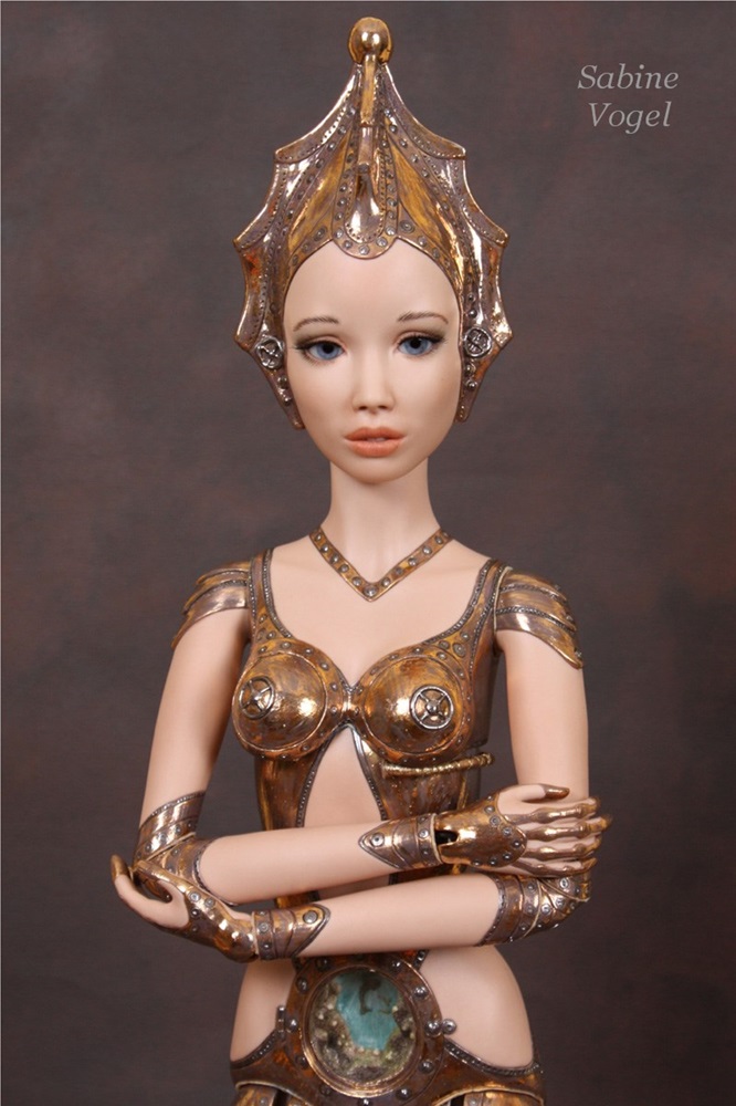 Porzellan, Porzellan-Farben, Leder, blaue Kristallglasaugen. Mit 14 Gelenken - Ellenbogen und Knie sind Doppelgelenke.