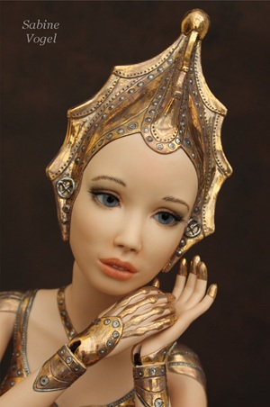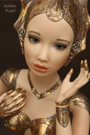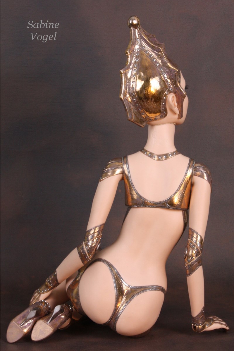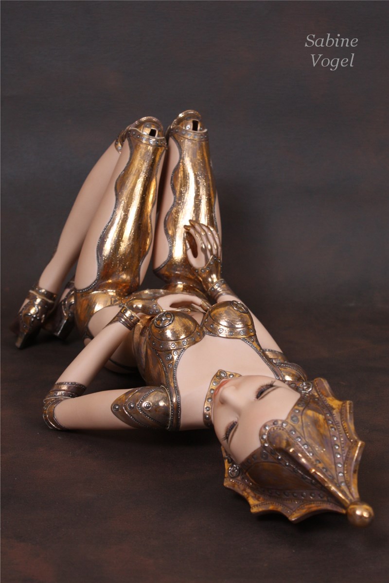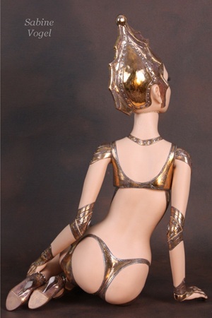 Porzellan, Porzellan-Farben, Leder, blaue Kristallglasaugen. Mit 14 Gelenken - Ellenbogen und Knie sind Doppelgelenke.