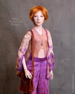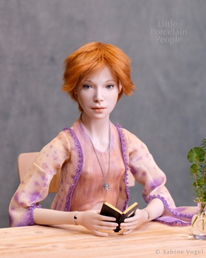 Haar: kupferfarbenes Mohair Haar, auf abnehmbarer Haarkappe mit Magnet.